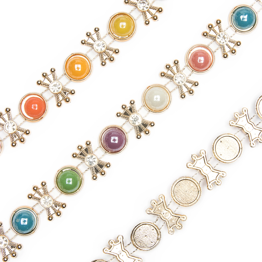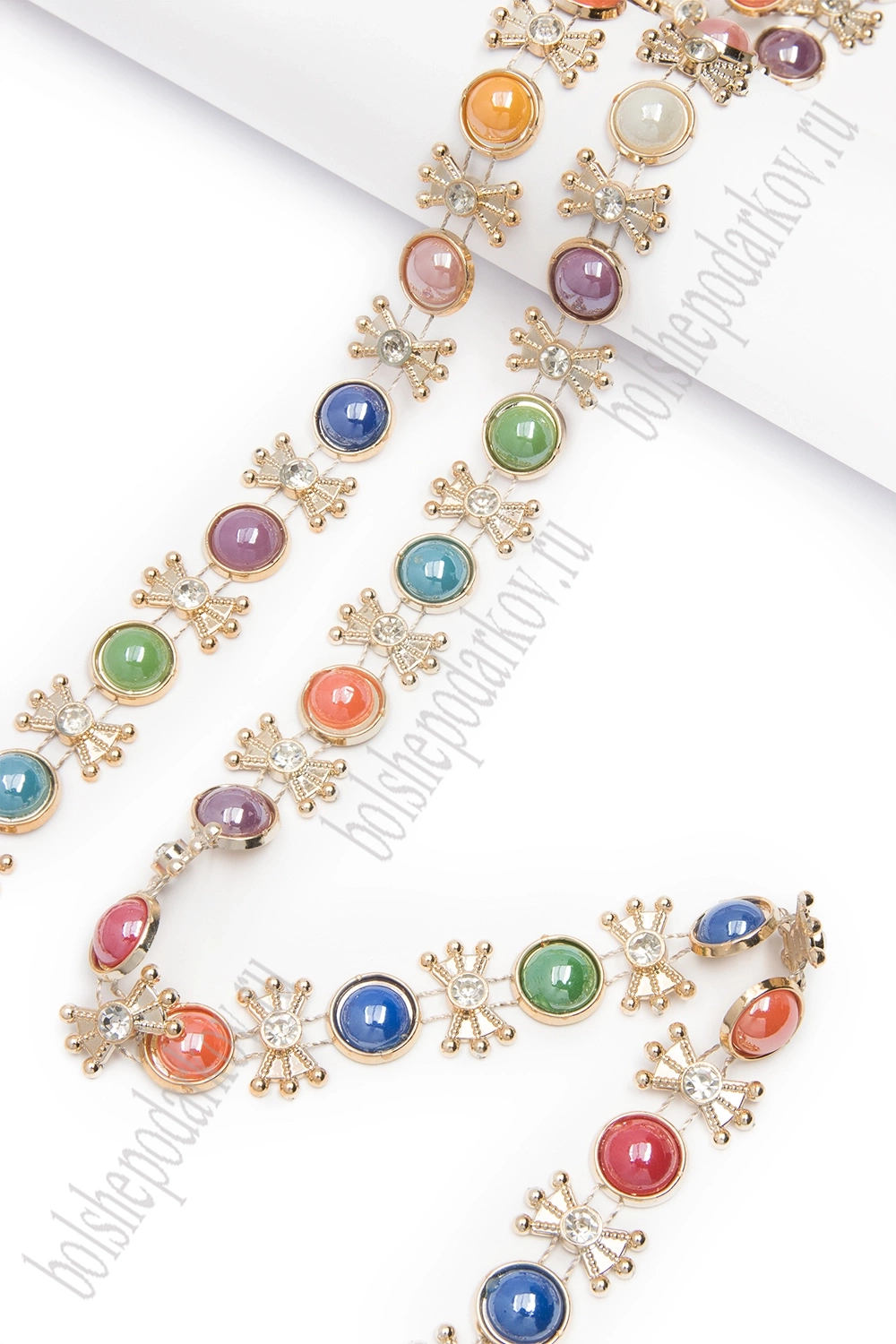 Тесьма "Полубусина со стразами" (10 ярд) SF-1405
