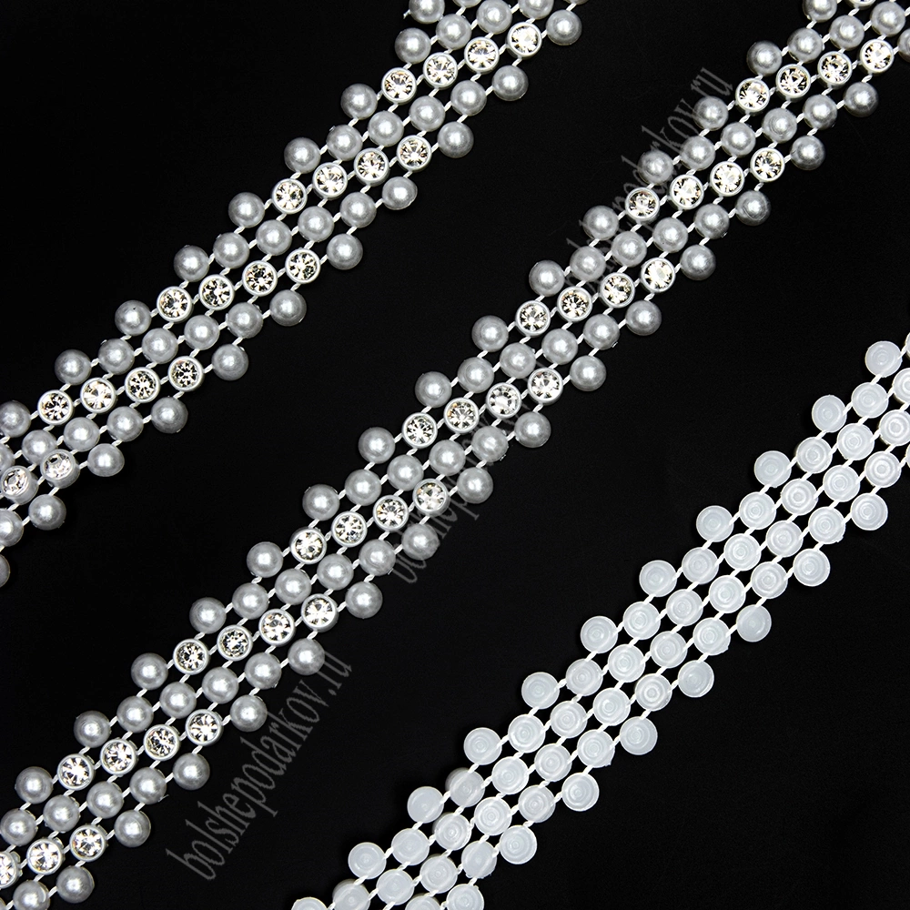 Тесьма декоративная полубусины со стразами 1,5 см*5 м (SF-7801) айвори