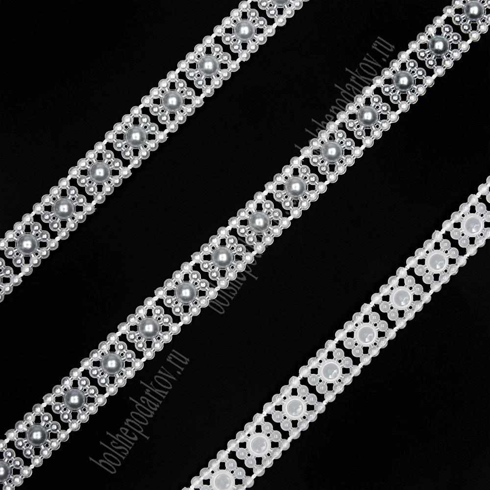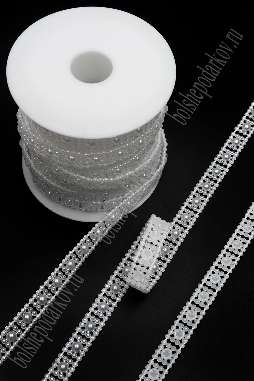 Тесьма декоративная "Квадратики" 1 см*10 ярд (SF-685) белый