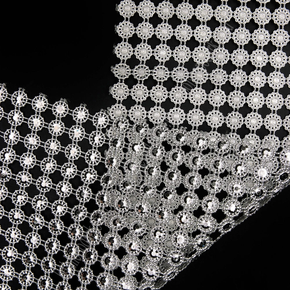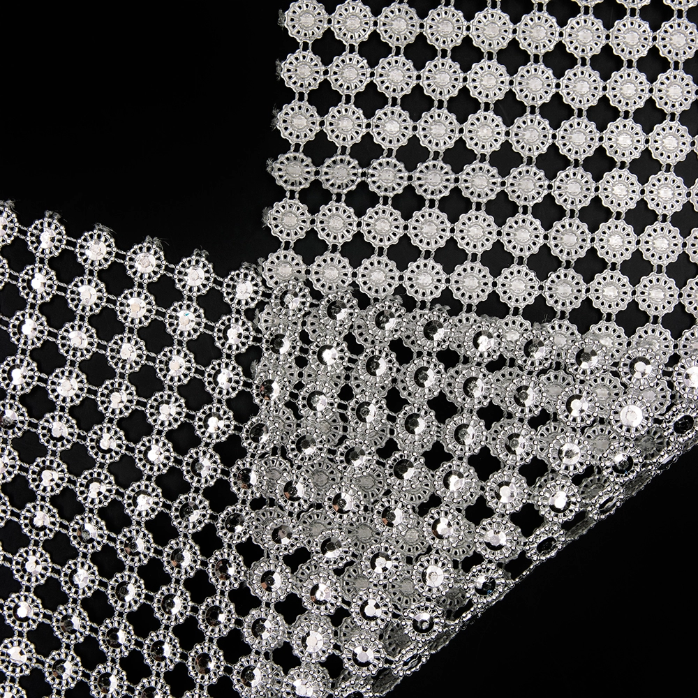 Тесьма декоративная "Цветочки" 12 рядов*11,5 см*10 ярд (SF-74-2) серебро