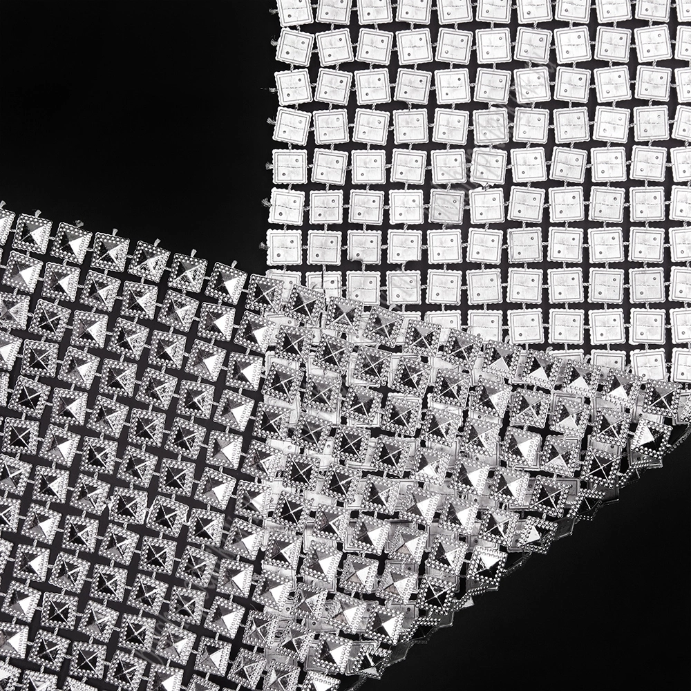 Тесьма декоративная "Квадрат" 12 рядов*10 см*10 ярд (SF-85) серебро
