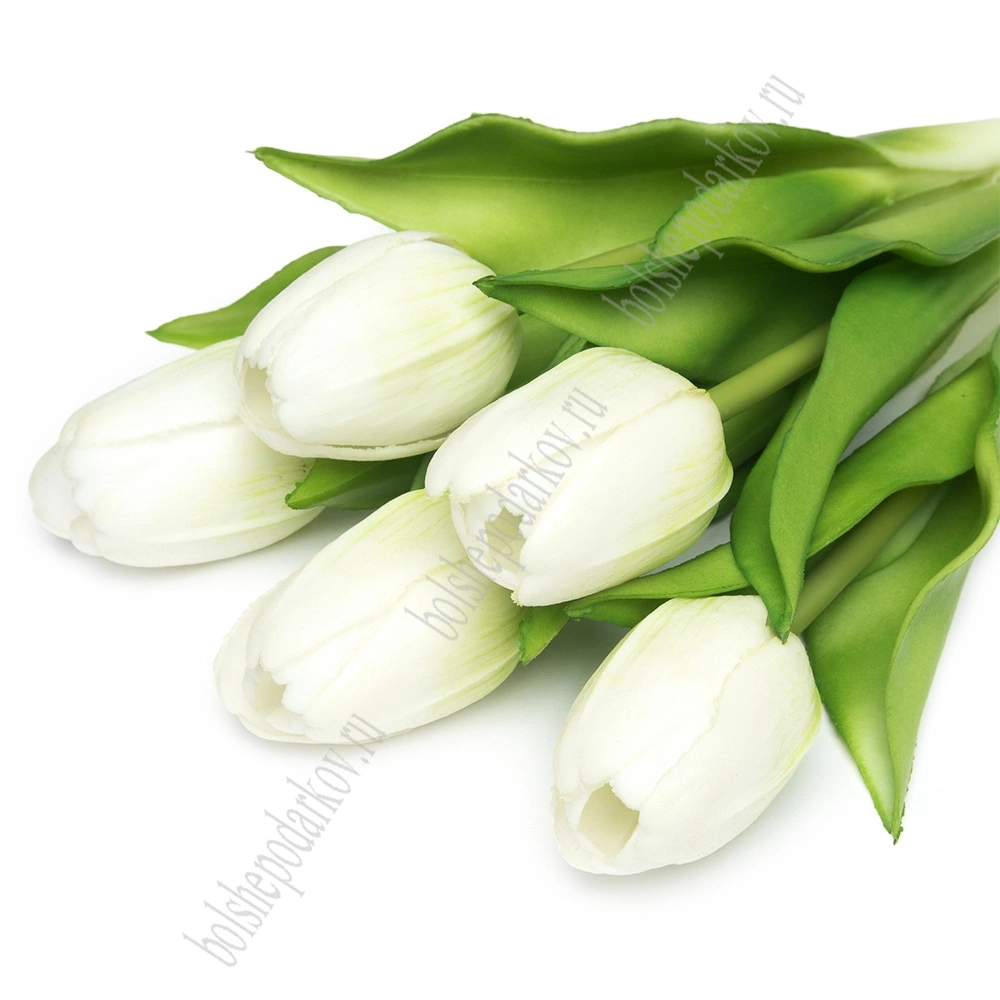 Веточка декоративная "Тюльпан" 32 см (5 шт) SF-8136, белый