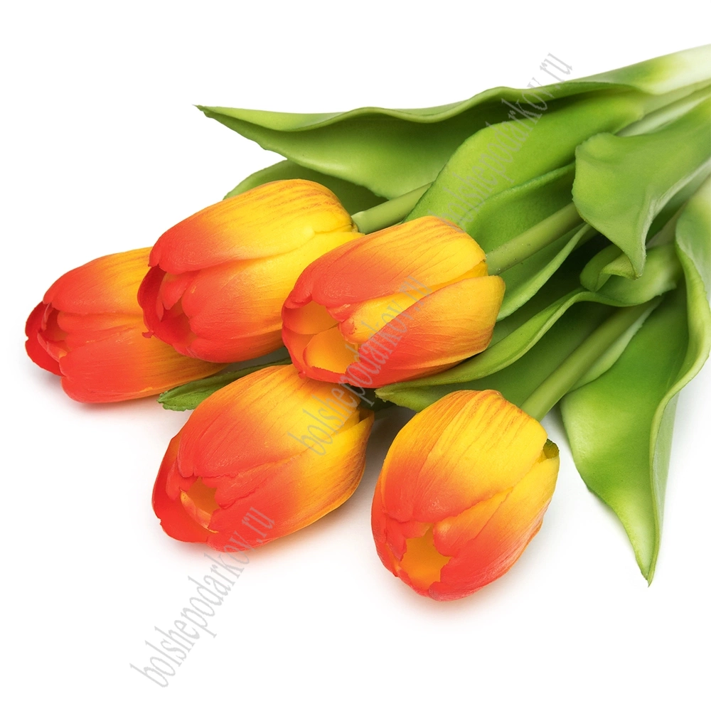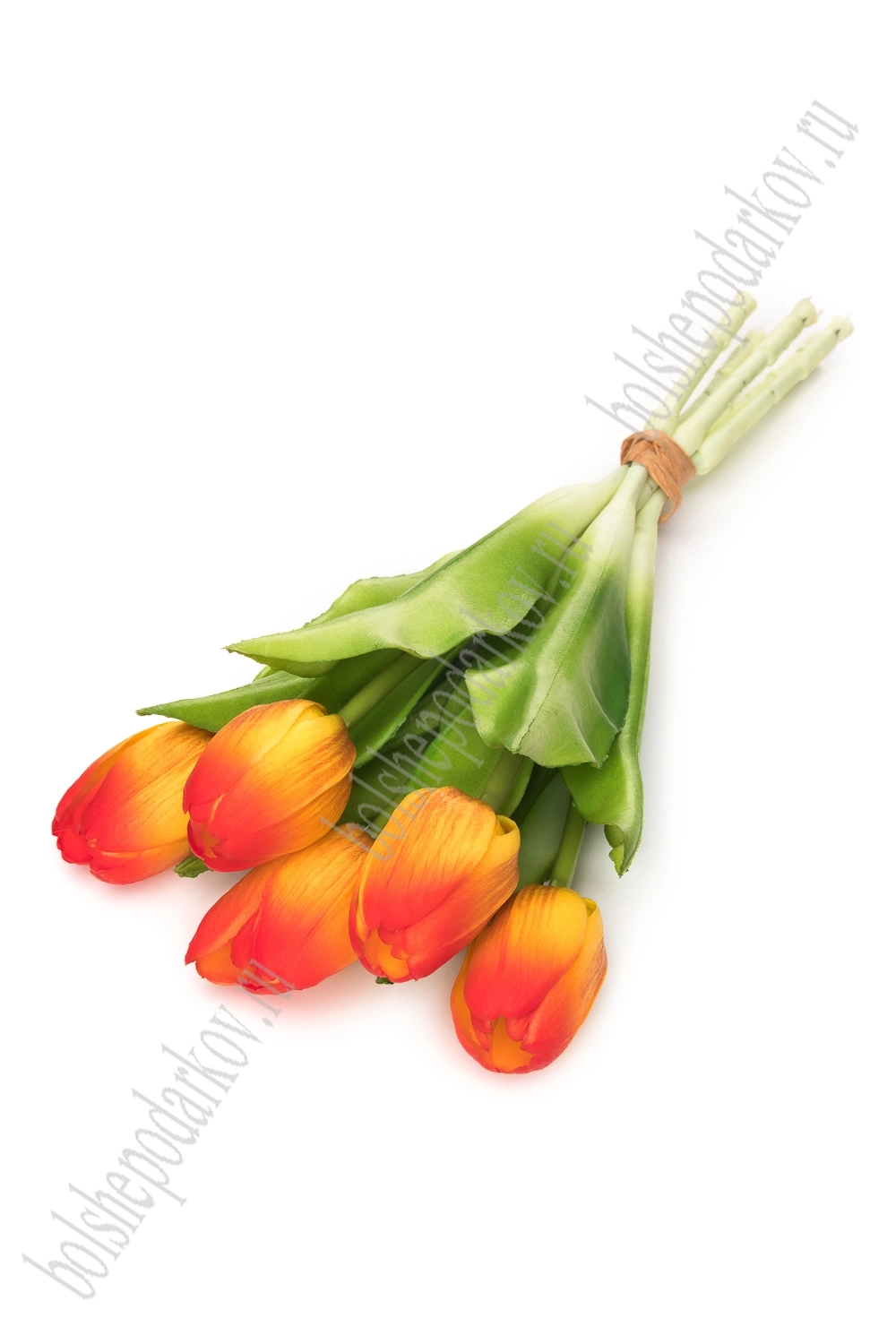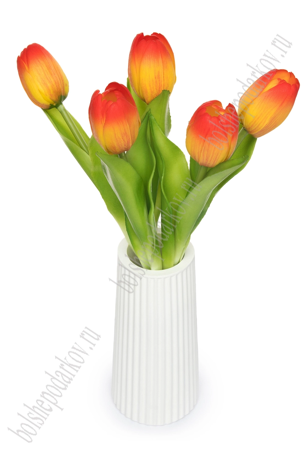 Веточка декоративная "Тюльпан" 32 см (5 шт) SF-8136, желто-красный