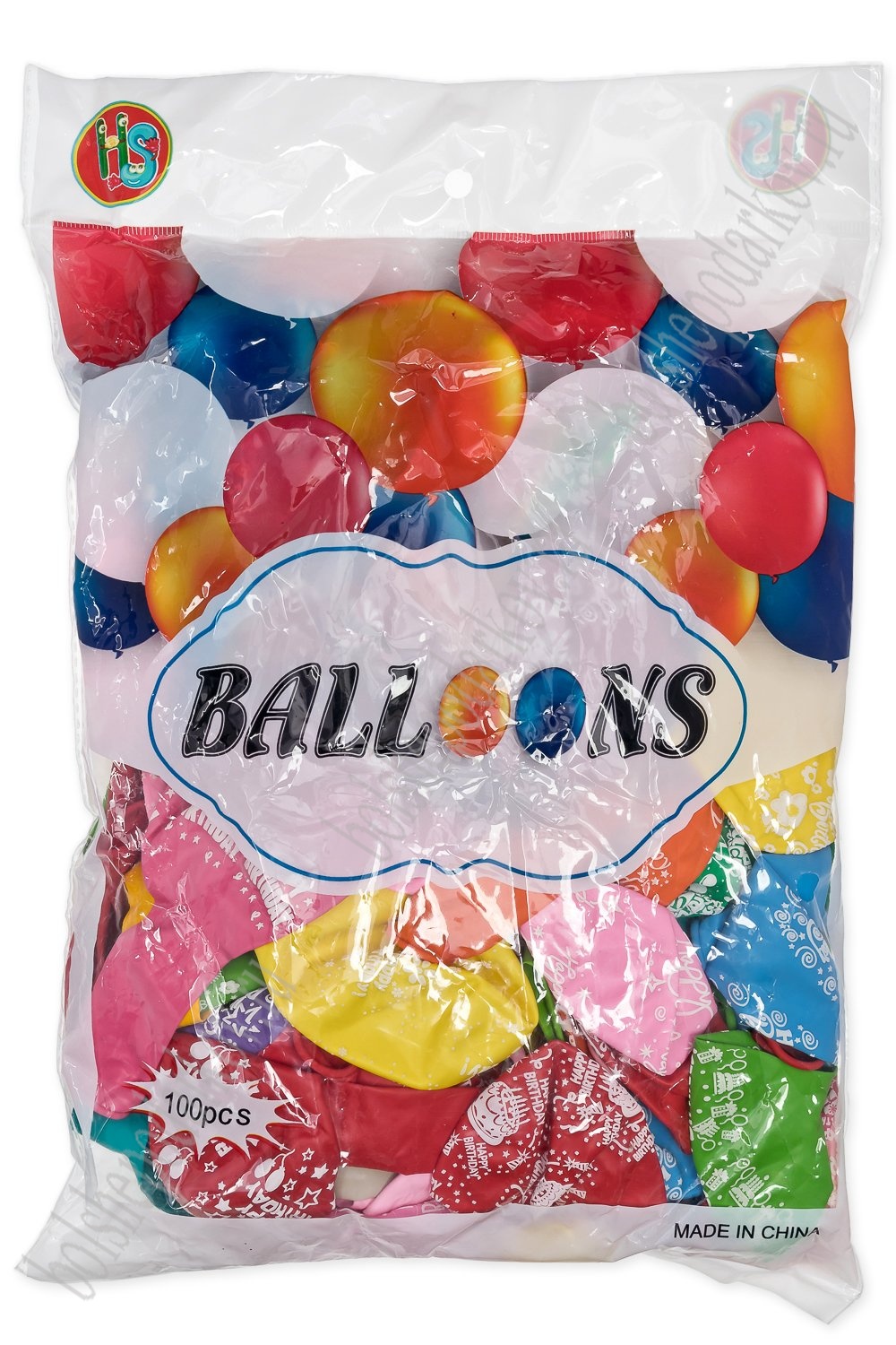 Шарики воздушные 12 дюймов "Happy birthday" (100 шт) SF-7835
