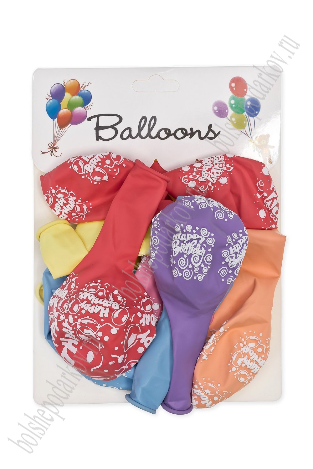 Шарики воздушные 12 дюймов "Happy birthday" (12 шт) SF-7835, №1