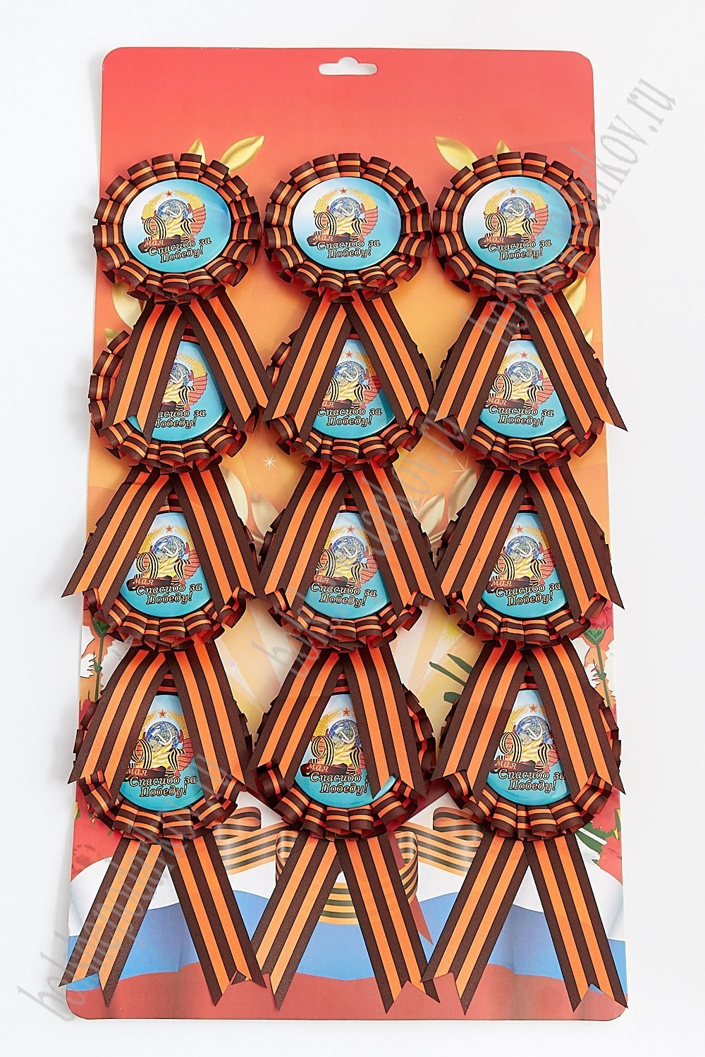 Значок на булавке с георгиевской лентой "9 мая" на блистере (12 шт) RN-058-16