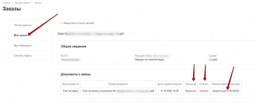 - Счет на аванс загружается в личный кабинет в раздел Текущие заказы - Информация и счета по заказу