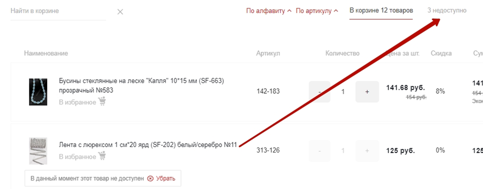 - Если товар есть в наличии, то его можно добавить в Корзину.